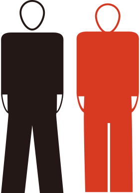 『支援』の目的から判断して、パンフレットの中心となるのは支援対象者と非支援対象者を表した正面から描かれた2対のピクトグラムである(図10)。両者の違いは、頭部の位置と両足の開閉状態で表されている。すなわち、支援対象者のピクトグラムでは、頭部の位置はほぼ胴体につながった状態で両足は閉じられているのに対して、非支援対象者では、頭部は宙に浮き両足が開いている。さらに支援対象者は赤色で強調されている。両者の差異を記号論の用語を使用して説明するならば、宙に浮いた頭部と開脚姿勢は支援の不要な一般者を表す「無徴」の記号表現であり、その逆の姿勢は「有徴」の記号表現である。ただし、この有徴―無徴の対立構造は、このパンフレットで終わり、この後に制作されるパンフレットでは、支援対象者も含めて一括して宙に浮いた頭部と開脚姿勢で表現され、支援対象者はたんに赤の色をつけることで識別されることになる。